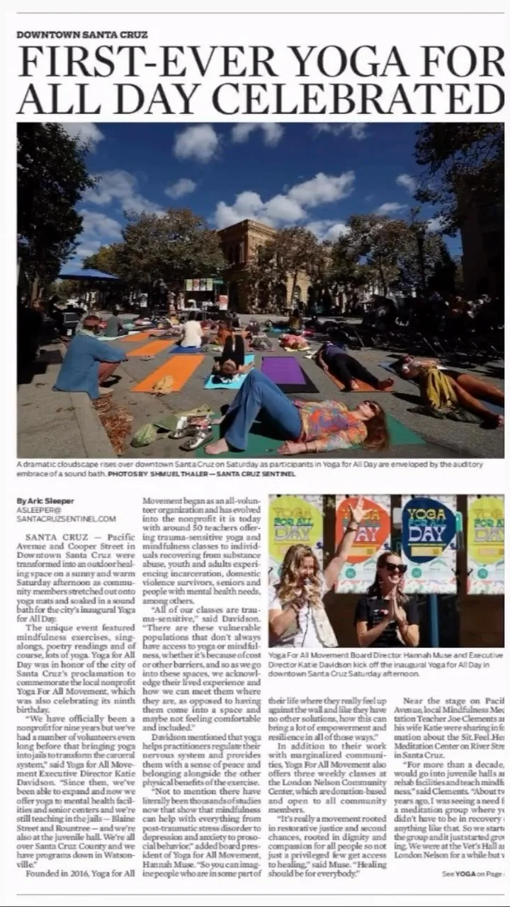 Be a part of the YFAMily in our classic tee, which is super-soft with a “Yoga For All Movement” university-style front screen print.